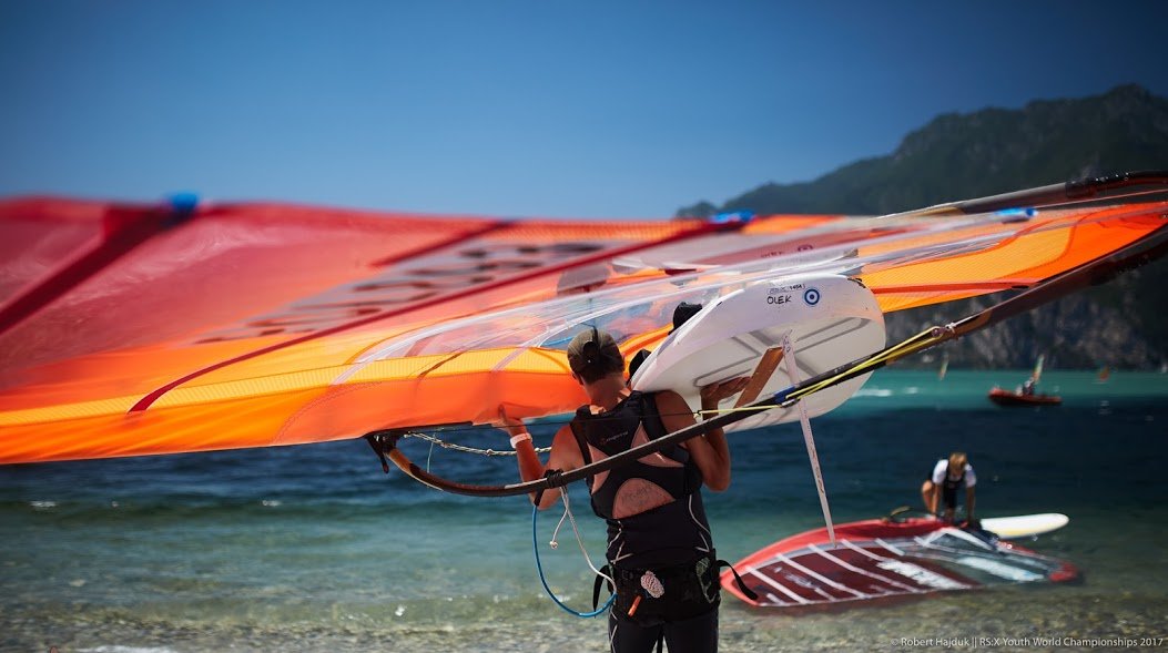 Zdjęcie windsurfera, na którym jest mój syn, wykonał: 2017 RS:X Youth World Championships || 2017-06-26, Torbole, Lake Garda, Italy || © Copyright 2017 || RS:X Class: Robert Hajduk – ShutterSail.com || All Rights Reserved ||